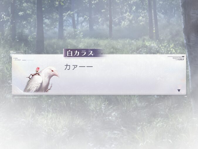 意識が朦朧とする中で確かに何かを貪欲に啜っていたような曖昧な記憶と口の中に血の匂いを残したまま彼の腕の中に抱かれ石棺の中に横たわった状態で目を覚ました彼女は、どうやら自分がシンの住処たる滅界のとある古城の地下壕で介抱を受けていたらしいこと、ただし激しく痛む身体にはまだ力が入らず支えがなければ起き上がれないこと、取り逃がしたと思われた白いカラスは彼の肩に留まり飛び去る気配もないことからその背中のバラの蕾が開くまでここにいさせて欲しいと彼に申し出るのだけど、これを受けて「俺たちの家」に「ようこそ」だなんて分かりやすく大歓迎であるシンは早速彼女を抱えて階段を上り上階へ、壮観な戦利品が所狭しと並ぶ自慢のコレクションルームを案内してくれる。
