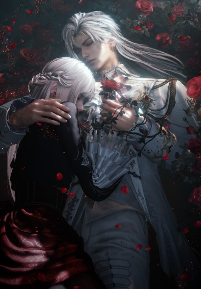 崩壊した聖核が完全に消え去りヴェイムを覆っていた「濃い血色の霧」が晴れると、ふたりは「初めての余生」を始めるにふさわしい場所として「白」と「赤」のバラが咲き乱れる彼女の秘密の庭園を訪れた。