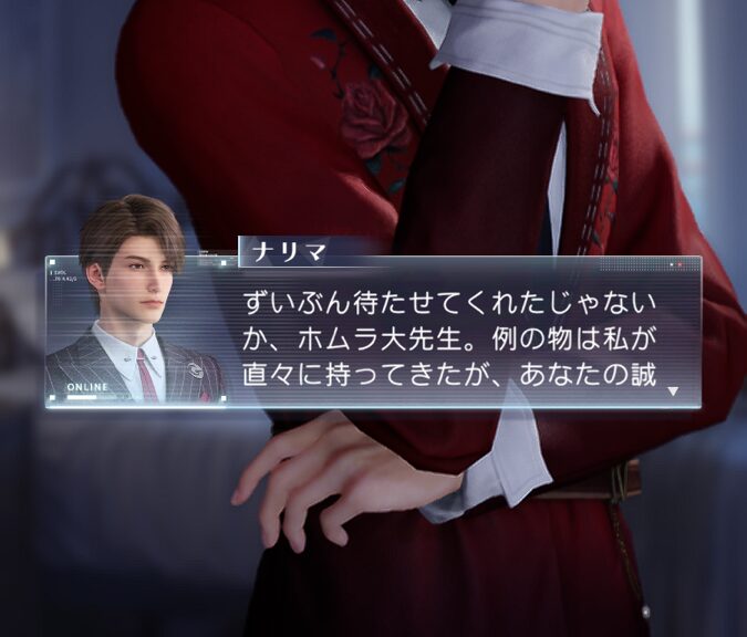 これは互いに譲るつもりのない取り引きにおいてどちらが先に現物を提示するか膠着する盤面を動かすホムラの一手なのだけど、美しさとも妖しさともなんとも筆舌に尽くしがたいこの気迫と風格はなんと形容すべきでしょう? 上手く言葉にできる方いませんか?←